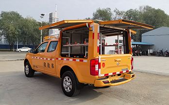 皮卡式自來水管道工程應急搶險搶修車:為適應自來水管網管道應急搶修作業(yè)的需要,針對搶修作業(yè)工具的存放需要及工作特點,本公司研制出新皮卡式應急搶險搶修專用車:皮卡式帶壓堵漏現場應急搶險搶修車。符合外出搶修工具的存放,且外出速度快,效率高,可稱為“搶修110”。