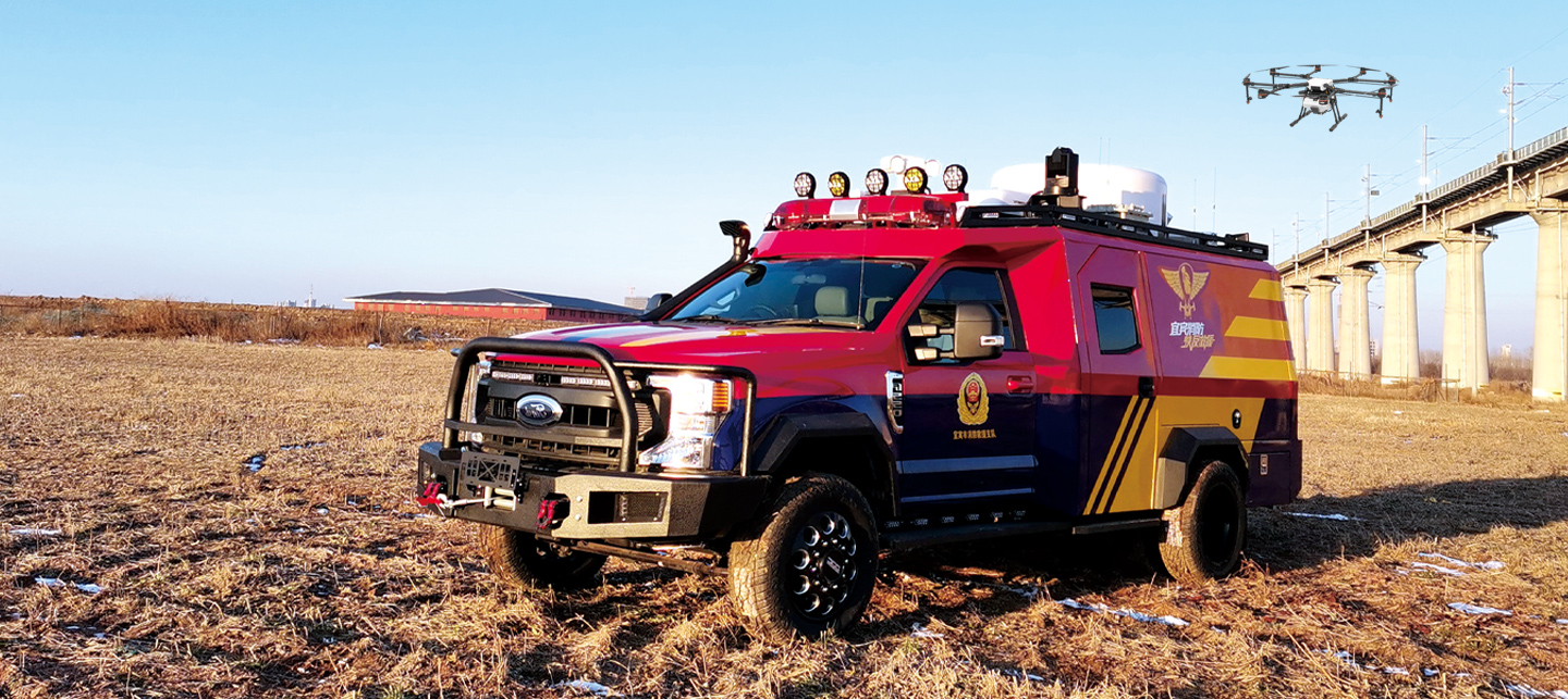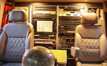 本車(chē)功能系統(tǒng),可通過(guò)各種通信手段,在災(zāi)害現(xiàn)場(chǎng)建立臨時(shí)指揮調(diào)度網(wǎng)絡(luò),滿(mǎn)足便攜式會(huì)議終端站的網(wǎng)絡(luò)需求,實(shí)現(xiàn)在任意時(shí)間、地點(diǎn)與部局指揮中心、總隊(duì)指揮中心音視頻的互聯(lián)互通;利用微波圖傳等,將采集到的圖像傳輸至指揮車(chē),通過(guò)衛(wèi)星通信系統(tǒng)上傳至總隊(duì)指揮中心、部局指揮中心;能通過(guò)衛(wèi)星電話(huà)與各級(jí)指揮部進(jìn)行語(yǔ)音通信;為現(xiàn)場(chǎng)指揮部提供音視頻、電源、照明等通信保障。