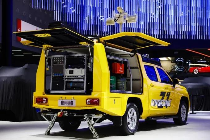 該應(yīng)通信指揮車是為應(yīng)對(duì)自然災(zāi)害而打造的車型,可實(shí)現(xiàn)多維偵測、無憂通訊、智能保障,用于水利、電網(wǎng)、通信等行業(yè)設(shè)備搶修及消防、災(zāi)害等應(yīng)急情況現(xiàn)場指揮作業(yè)。該車貨箱增設(shè)數(shù)種專業(yè)通訊設(shè)備,比如一些受到自然災(zāi)害影響的場所,原有的通信設(shè)備可能無法正常工作,會(huì)導(dǎo)致現(xiàn)場的手機(jī)網(wǎng)絡(luò)出現(xiàn)無信號(hào)、弱覆蓋、網(wǎng)絡(luò)擁塞等狀況。這時(shí)就需要應(yīng)急通信車登場,為救災(zāi)現(xiàn)場人員提供語音及上網(wǎng)功能的保障,在一些邊遠(yuǎn)地區(qū),還可以借助衛(wèi)星通信設(shè)備實(shí)現(xiàn)上述保障能力。而皮卡本身就擁有較強(qiáng)的通過性,對(duì)于需要這種設(shè)備的地區(qū)也能更加自如地應(yīng)對(duì)。