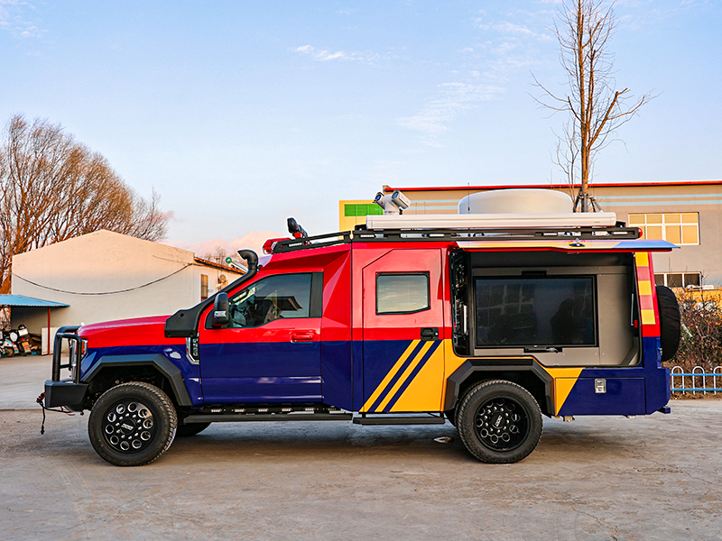 這款越野通信指揮車采用福特F550底盤打造而成,動力方面:搭載7.3L汽油渦輪增壓發(fā)動機(jī),匹配 10檔自動變速箱,功率257KW,扭矩635Nm,動力強(qiáng)勁。在越野性能方面,配有四輪驅(qū)動、越野輪胎、限滑差速器及足夠的離地間隙等。