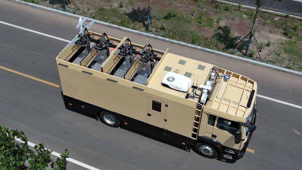 可用于搭載和調度多架無人機的重型卡車平臺。具備強大的承載和運輸能力、多無人機聯合作業(yè)支持、以及多聯指揮調度功能。