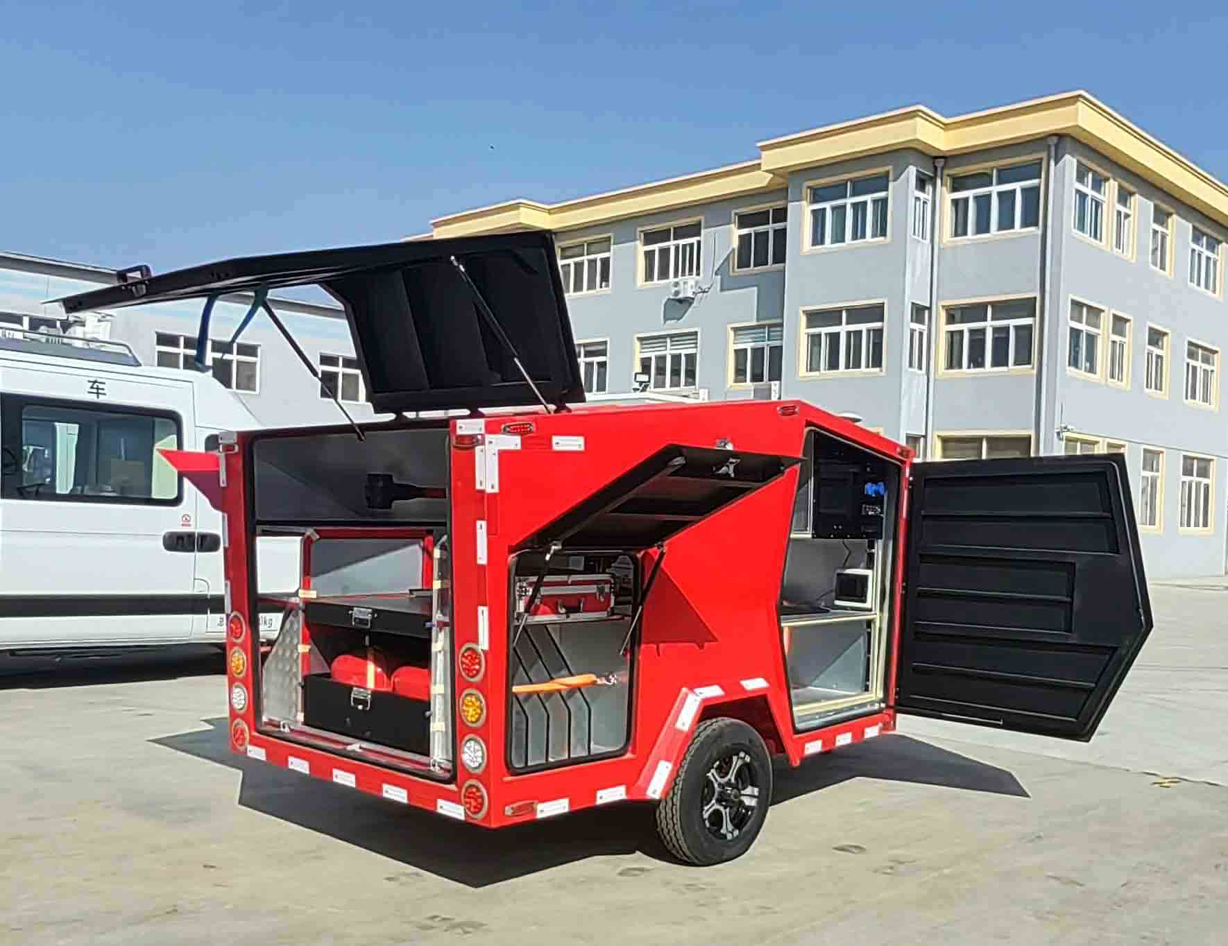 模塊化運(yùn)載平臺:集成模塊化車載系統(tǒng),包含無人機(jī)轉(zhuǎn)運(yùn)、滅火救援物資保障、信息化指控中心功能。