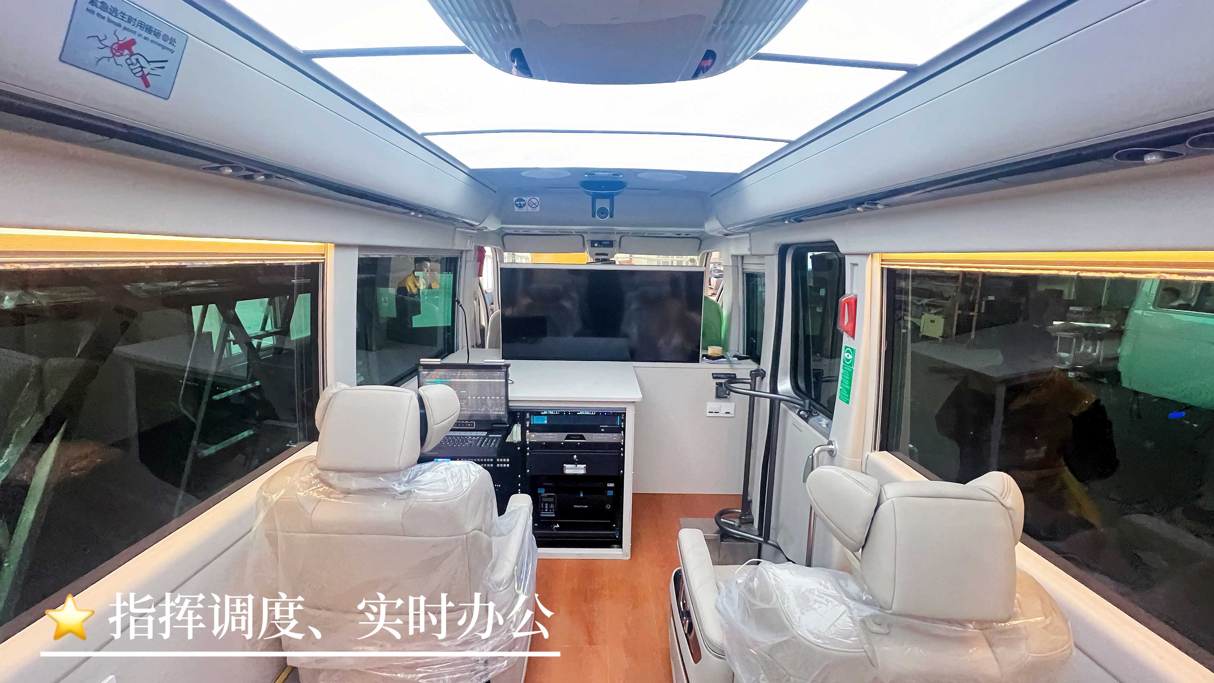 同時,該車具備出色的平戰(zhàn)結(jié)合特性,在非災害時期可作為高端商務辦公移動平臺使用。車內(nèi)寬敞空間經(jīng)過模塊化設計,可快速切換為商務辦公模式,配備的高清視頻會議系統(tǒng)在日常商務洽談中同樣能發(fā)揮重要作用,支持與異地合作伙伴進行流暢的遠程會議,清晰傳遞項目方案與合作細節(jié);衛(wèi)星通信系統(tǒng)和公網(wǎng)通信系統(tǒng)保障了在商務出行中隨時隨地接入網(wǎng)絡,處理郵件、查閱資料、進行在線協(xié)作毫無阻礙;車內(nèi)預留的辦公區(qū)域可放置筆記本電腦、文件資料等,搭配舒適的座椅和適宜的車內(nèi)溫度控制系統(tǒng),為商務人士營造出高效、舒適的移動辦公環(huán)境。無論是災害救援時的緊急指揮,還是日常的商務差旅辦公,該車都能完美適配,實現(xiàn)一車多用,大幅提升設備利用率。