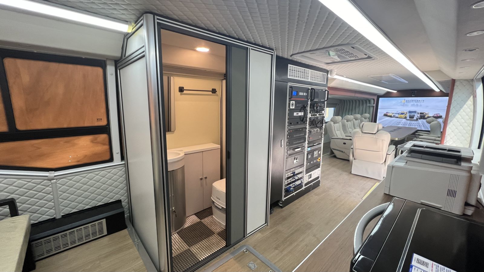 另外還配備了供配電系統(tǒng)、升降照明系統(tǒng)、激光打印一體機(jī)、車載飲水機(jī)、微波爐等生活設(shè)備,可以滿足長(zhǎng)時(shí)間野外作業(yè)。